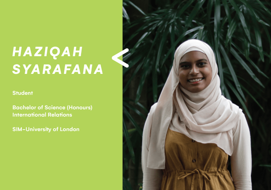 Passionate about environmental issues, Haziqah Syarafana, President of Eco-SIM, seeks to raise awareness about issues like climate change and inspire sustainability habits within the student population. The recycling of e-waste bins in SIM's campus is just one of the Club's initiatives towards a greener future.