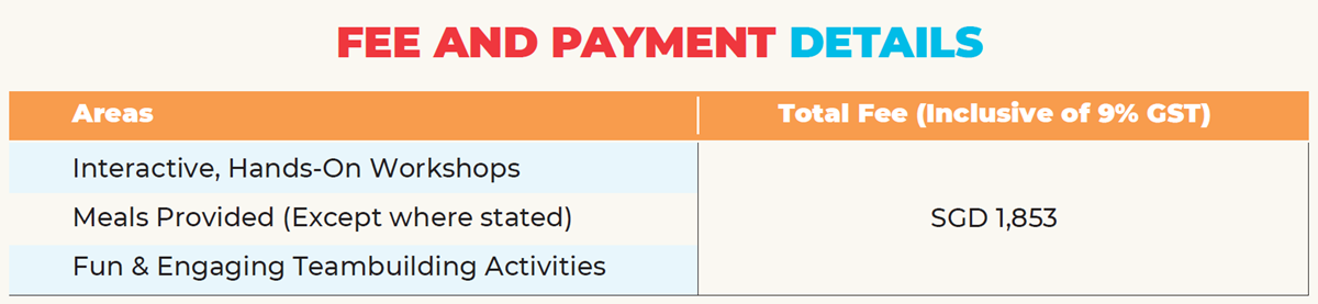 Payment must be made to the Singapore Institute of Management at least 1 month prior to the start of the Study Tour.